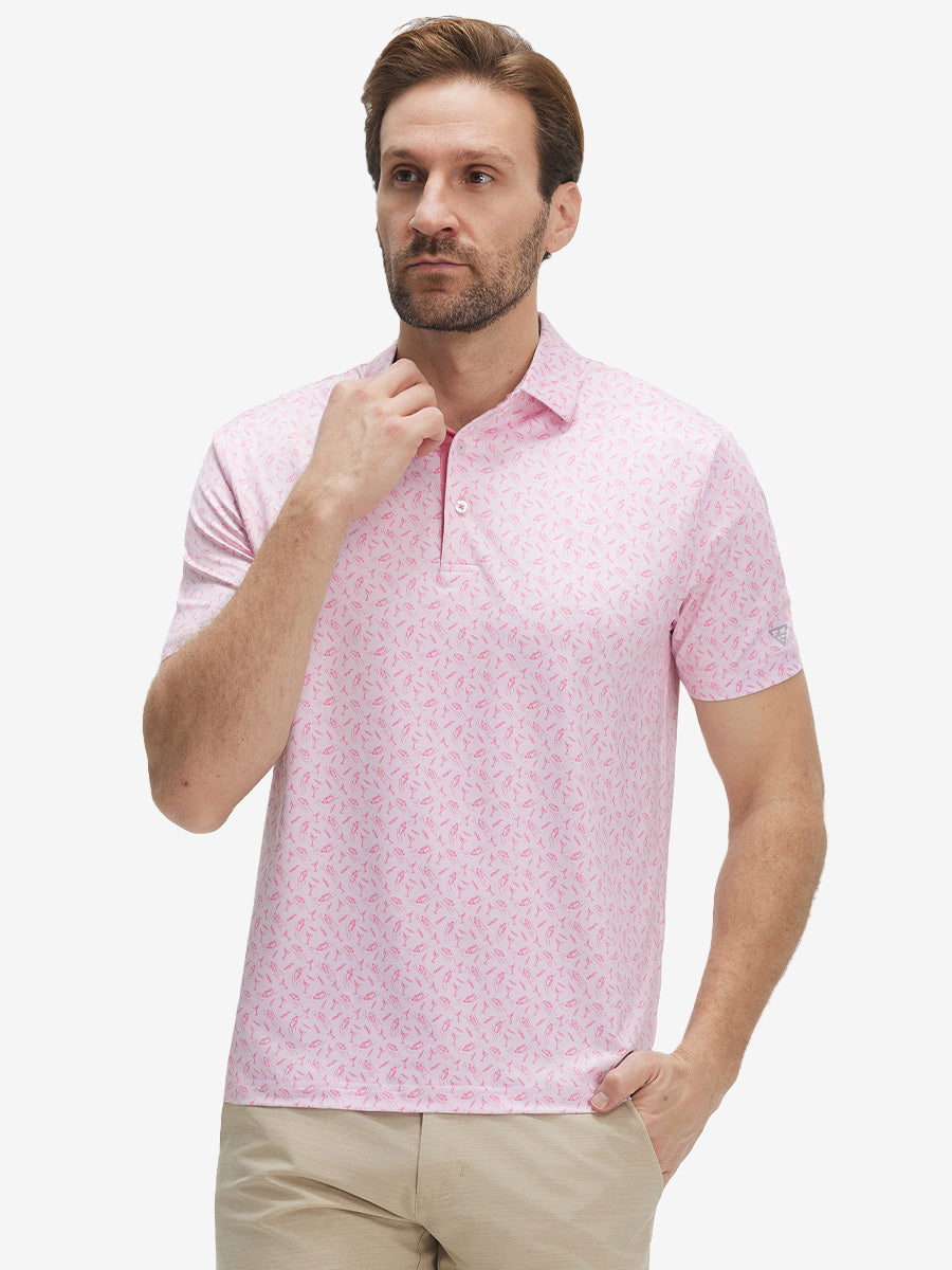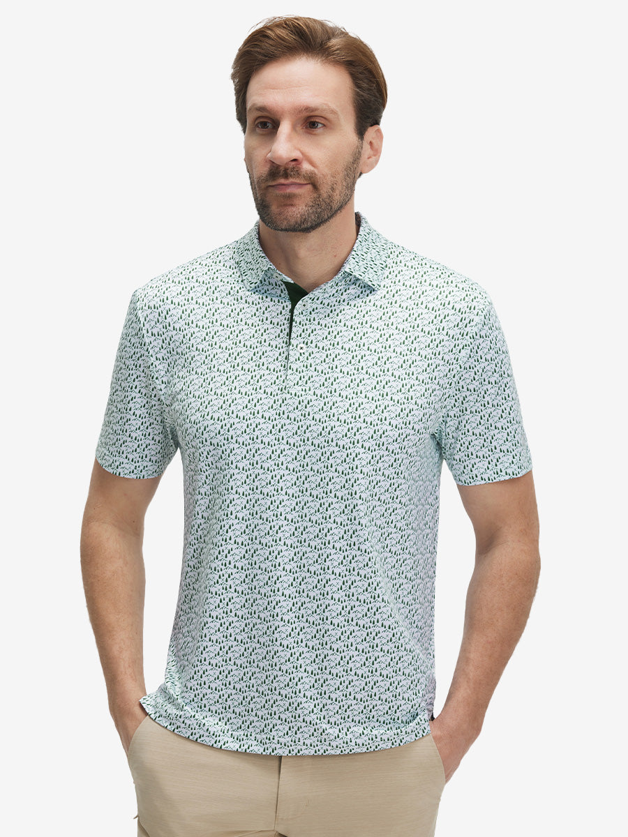 4 Way Stretch Print Collared Polo Shirts