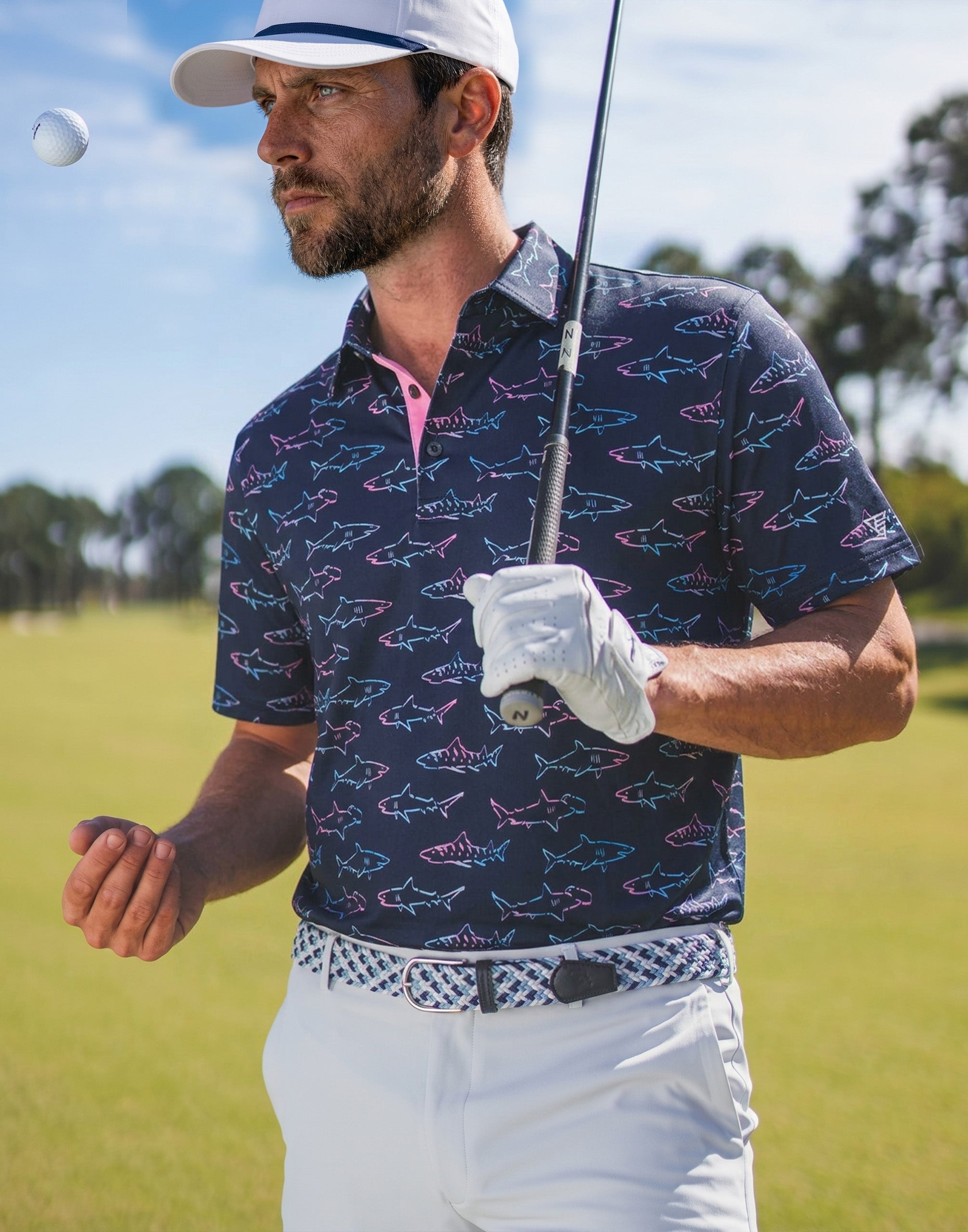 Step up your game in 4 Way Stretch Print Collared Polo Shirts! Designed with breathable, moisture-wicking, quick-dry fabric and a smooth, skin-friendly feel, they keep you cool and comfortable all day. The 4-way stretch ensures total freedom of movement, while UPF 50+ shields you from the sun—perfect for golf or everyday wear. Bold print designs add standout style, so you look sharp whether you're on the course or out and about!