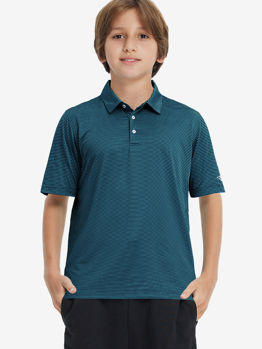 Performance Cooling Polo - Youth crafted from polyester spandex striped jersey. Lightweight, moisture-wicking, quick-drying, UPF 50+, soft hand-feel, 4-way stretch for comfort and breathability. Special construction ensures a no-curl collar and maintains shape.