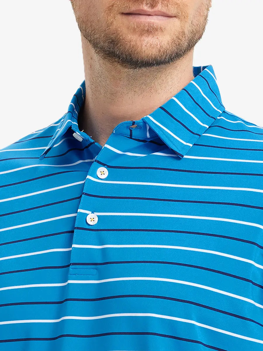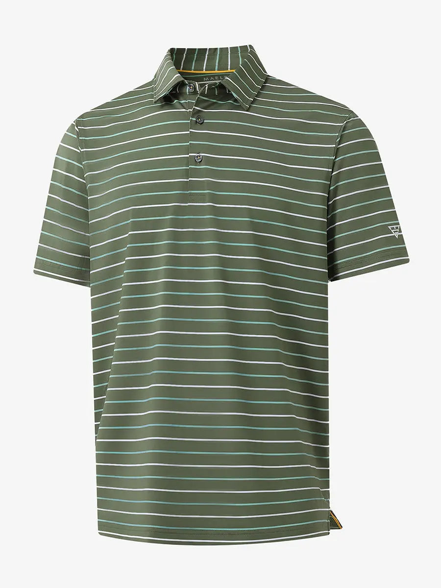 Our men's golf shirt features yarn-dyed stripes and is made from high-end polyester-spandex material, providing softness and breathability. It effectively wicks moisture to keep you cool and dry. With 4-way stretch fabric, this polo ensures full range of motion for any golfer. Ideal for the course or casual wear.