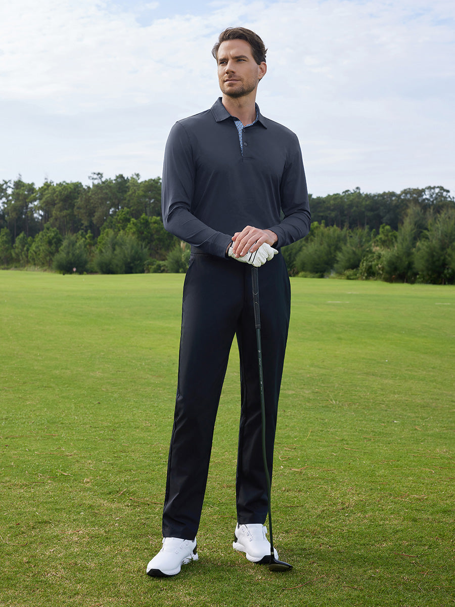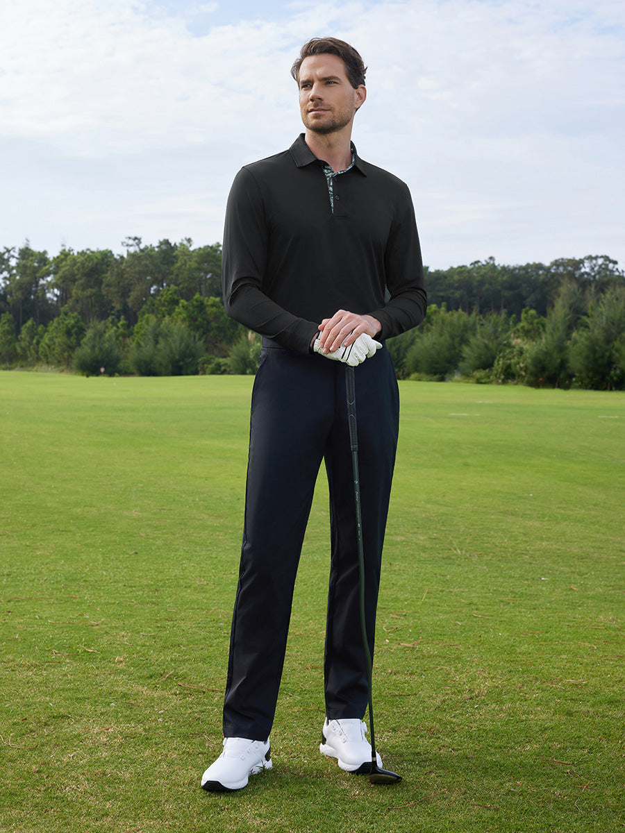 Mantente fresco y cómodo con nuestro polo liso de manga larga. Confeccionado con tejido que absorbe la humedad, de secado rápido, que ofrece protección UPF50+, un tacto suave y elasticidad en 4 direcciones para una transpirabilidad máxima. Nuestras camisas casuales para hombre presentan un diseño liso de punto con un elegante estampado de contraste en el interior del cuello y la tapeta, garantizando un look sofisticado y cómodo durante todo el día.
