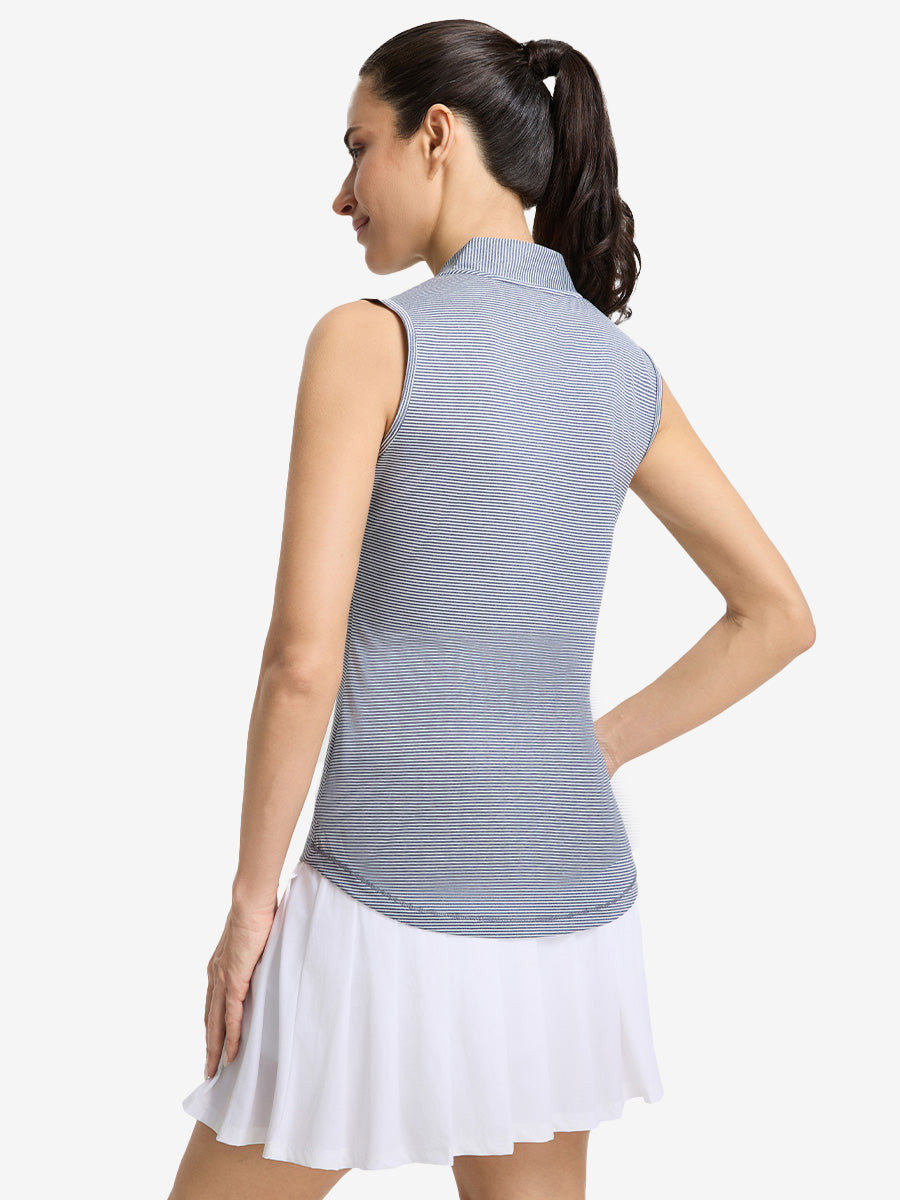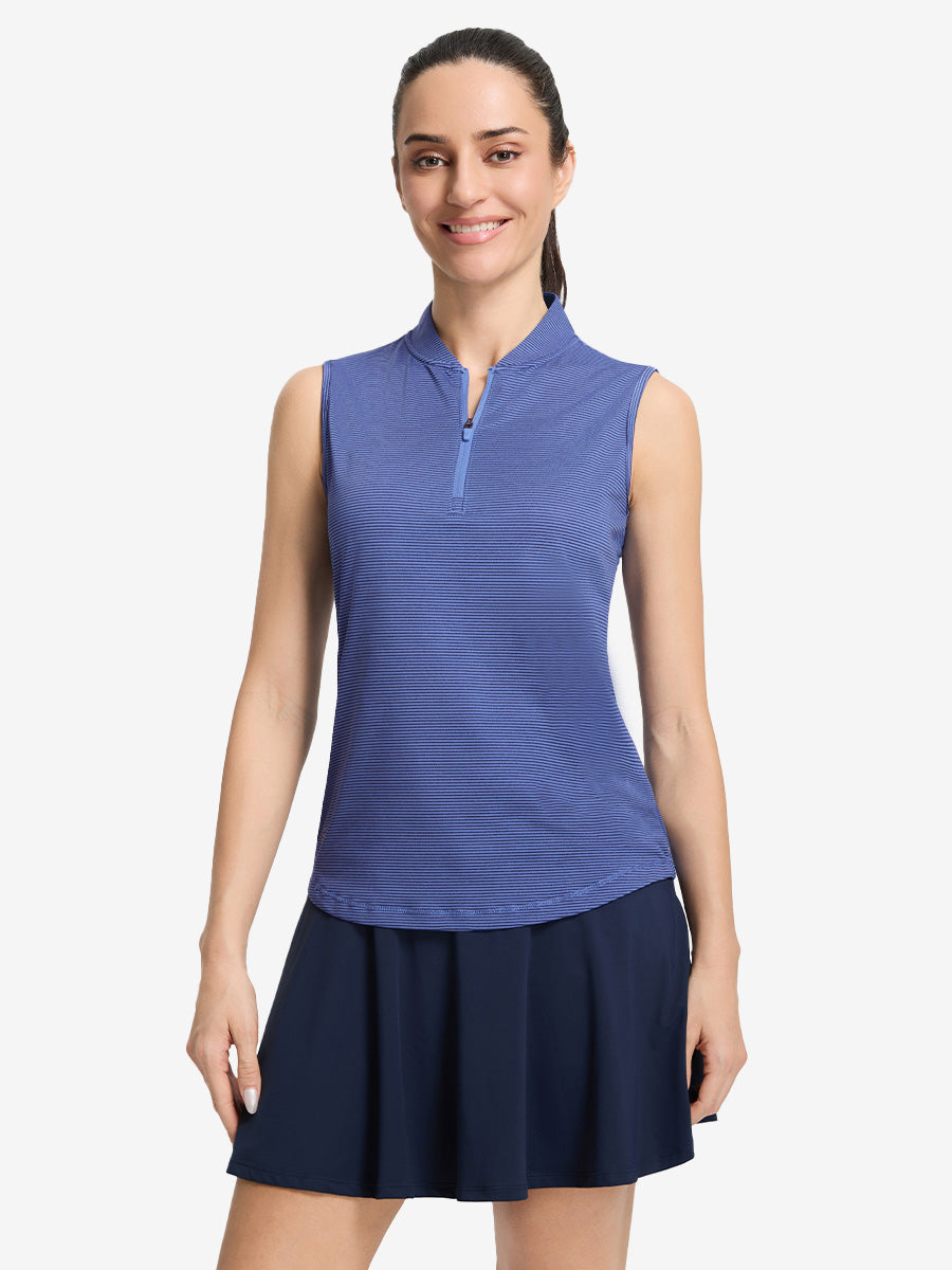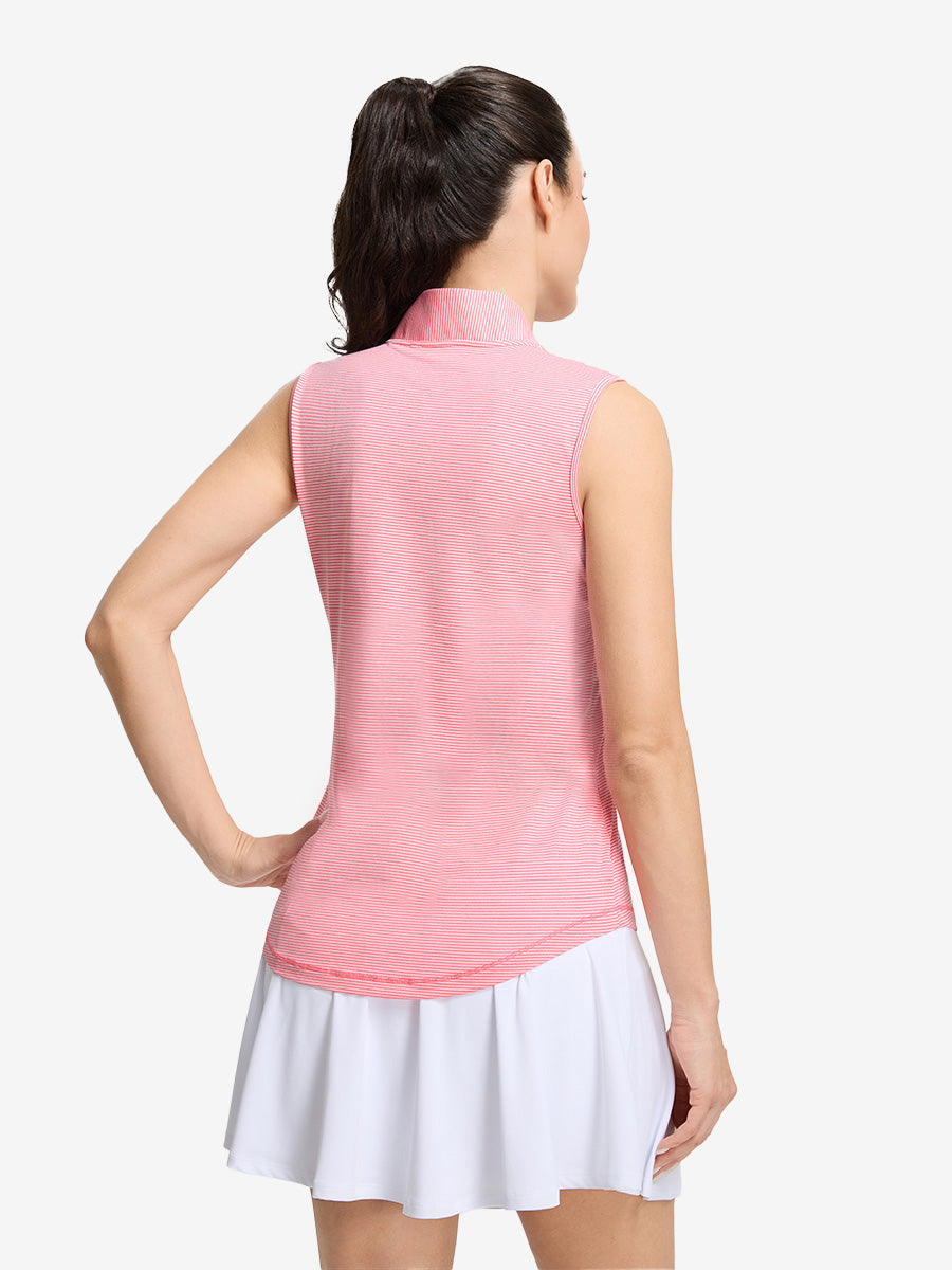 Play hard and stay cool in Women‘s Q-Zip Pin Striped Golf Shirts—lightweight, breathable pinstripe fabric wicks sweat and dries fast for summer-ready comfort. The sleeveless, collarless design with a convenient quarter-zip lets you adjust airflow on the go, while 4-way stretch ensures total freedom of movement on the golf course, tennis court, or pickleball match. With UPF 50+ sun protection and a flattering fit, it’s performance-ready and perfect for casual wear too!