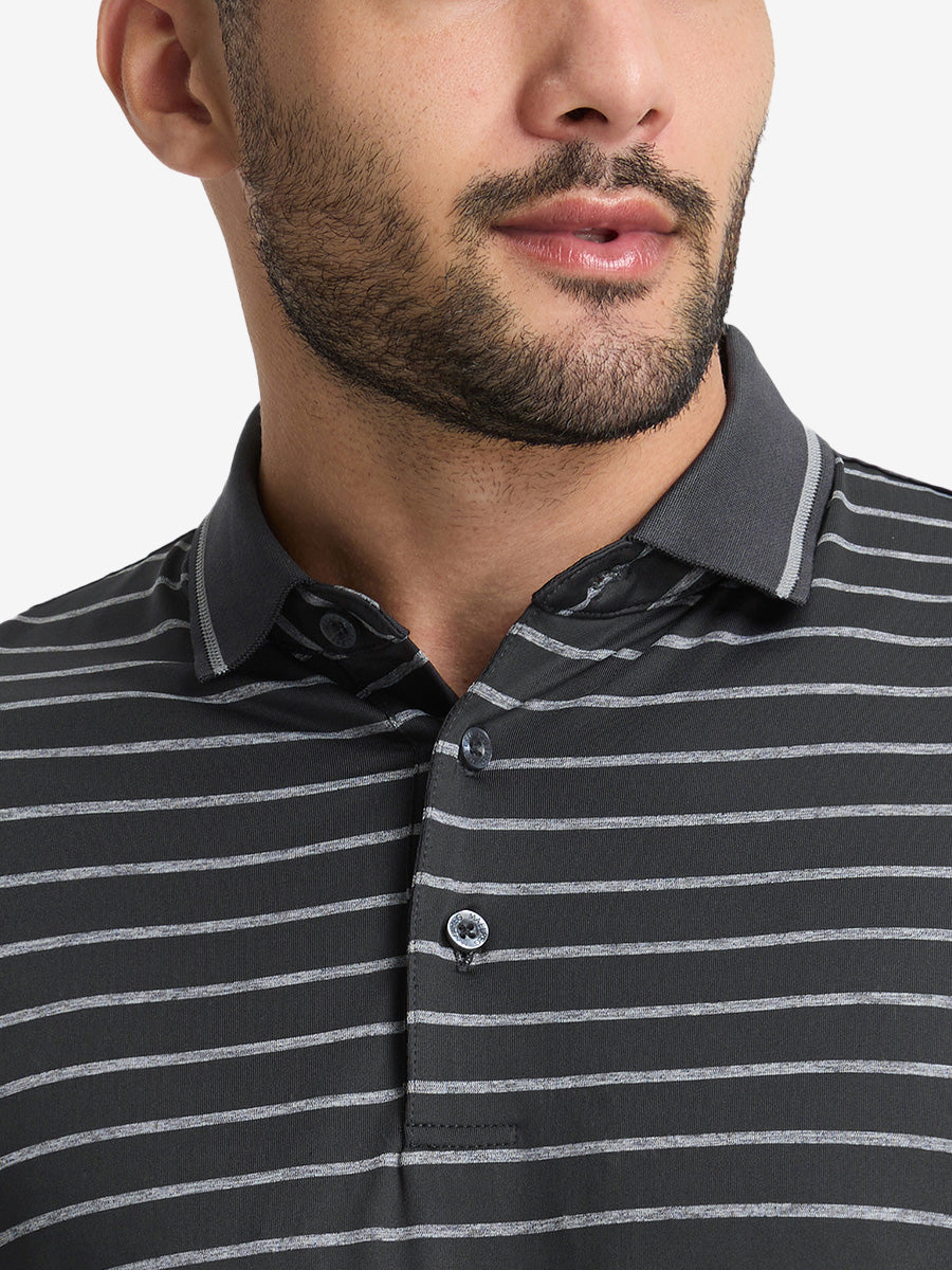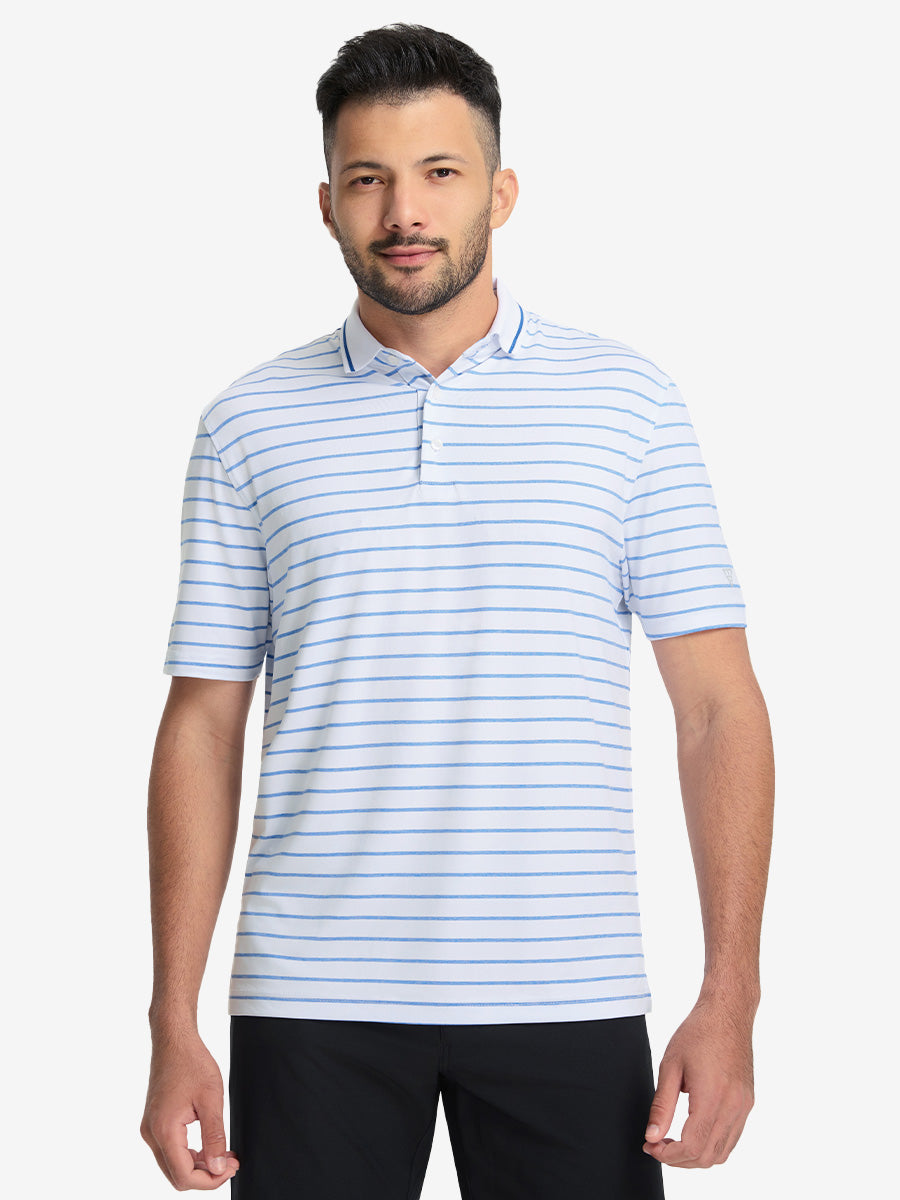 Non-Curl Ribbed Collar Striped Polo Shirts