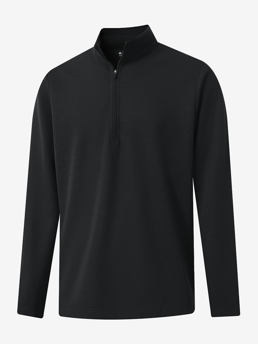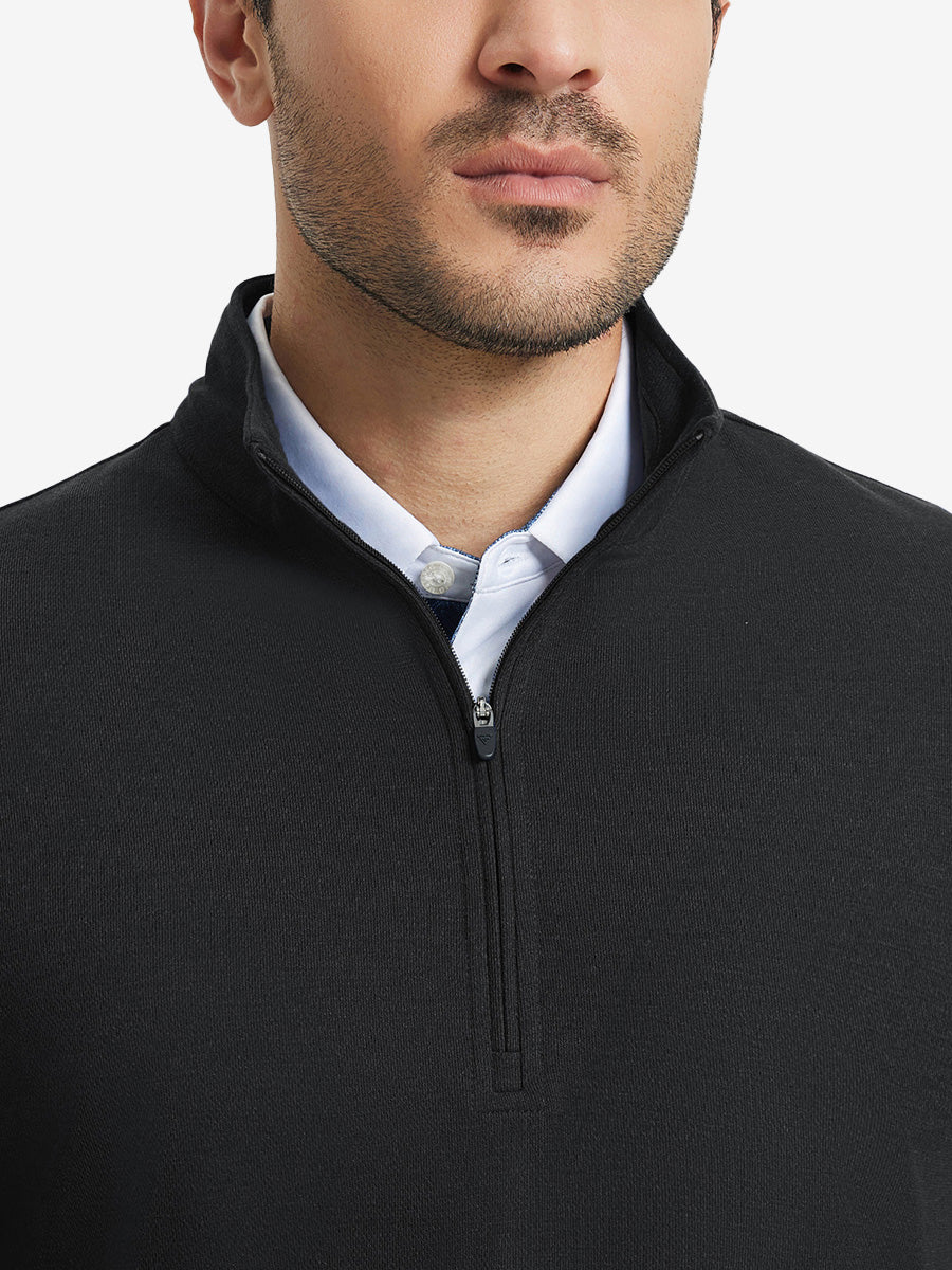 Experience ultimate comfort and style with our Premium Jacquard Quarter Zip Pullover. Crafted from performance herringbone fabric, it offers dry fit technology and UPF 30+ protection. This men's sweatshirt is ideal for staying warm in cold weather and perfect for layering in autumn and winter. The elaborately developed fabric ensures wear-resistance and durability, while maintaining a slight stretch for ease of movement. With meticulous stitching and exquisite details, this pullover is a perfect blend of quality and functionality.
