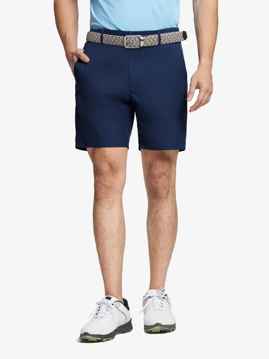 Elevate your game with our Water Resistant Golf Shorts for men. Crafted from premium polyester, these lightweight shorts offer moisture-wicking properties, easy care, and UPF30+ sun protection. Designed for comfort and flexibility, they keep you cool and allow a full range of motion. The secure closure with buttons and a zipper fly ensures a perfect fit, perfect for a flawless golfing experience.